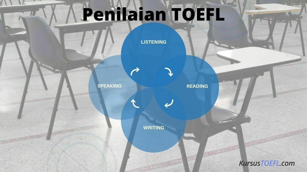 Penilaian TOEFL iBT dibuat berdasarkan jawaban para peserta pada serangkaian soal yang dibagi dalam 4 bagian yang mencakup 4 skills seperti Listening,Reading, Writing, dan Speaking. TOEFL ialah Test Of English as a Foreign Language yang diorganisir oleh lembaga Amerika bernama ETS (English Test Service). Nilai yang didapat dari TOEFL bisa digunakan untuk meneruskan pendidikan di luar negeri. Nilai TOEFL juga biasa dipakai untuk pengajuan beasiswa, S2, atau untuk melamar di perusahaan asing.TOEFL terbagi kedalam 3 jenis test, yaitu IBT (Internet Based Test), CBT (Computer Based Test), dan PBT (Paper Based Test). Masing-masing test TOEFL tersebut memiliki maksmimun skor yang berbeda. Untuk CBT, maksimum skornya ialah 330, PBT 677, dan IBT sekitar 120.